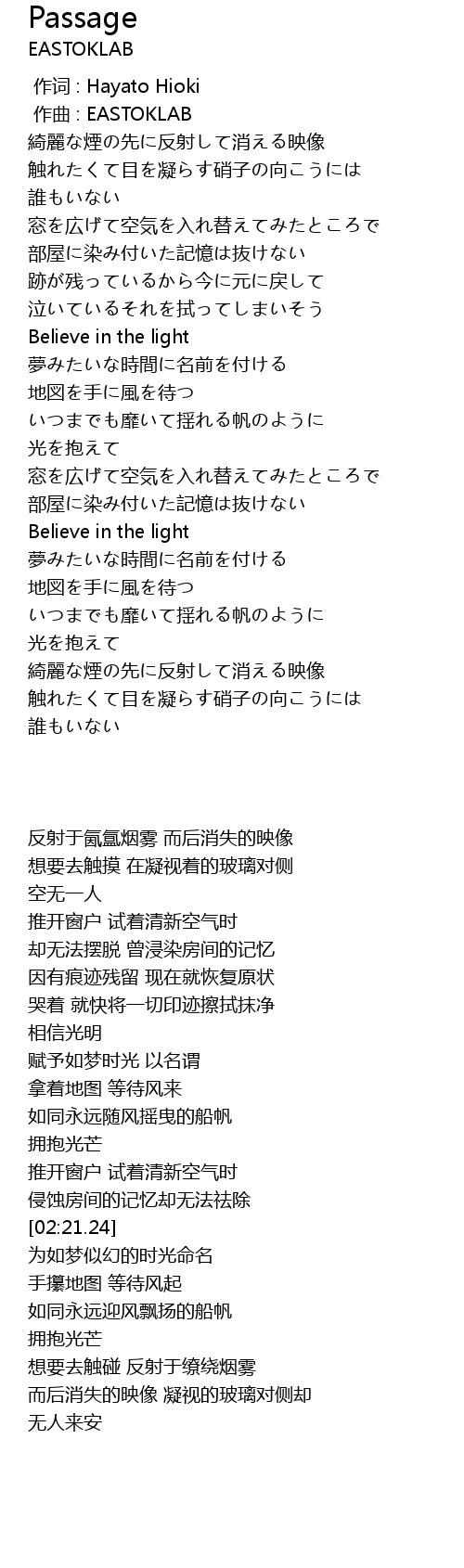 | [02:21.24] | Believe in the light |