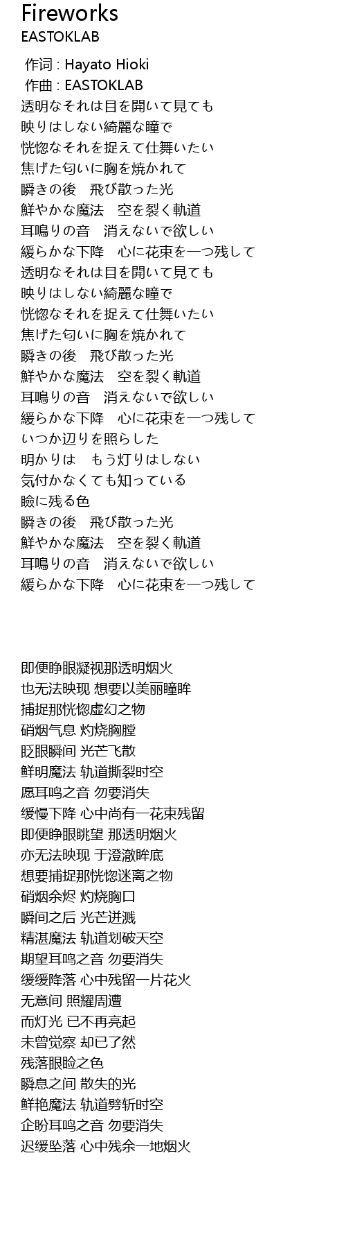 | [00:00.000] | 作词 : Hayato Hioki |
