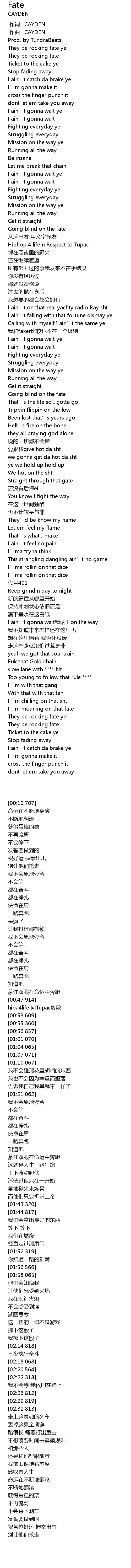 | [00:13.457] | They be rocking fate |