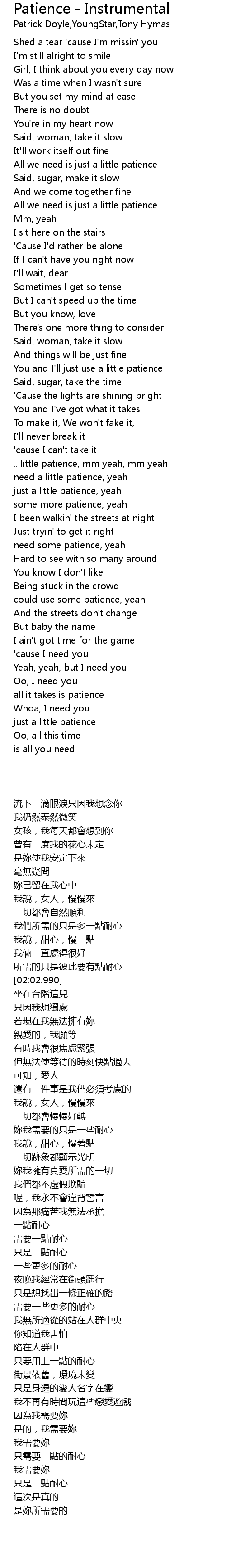need some patience, yeah |