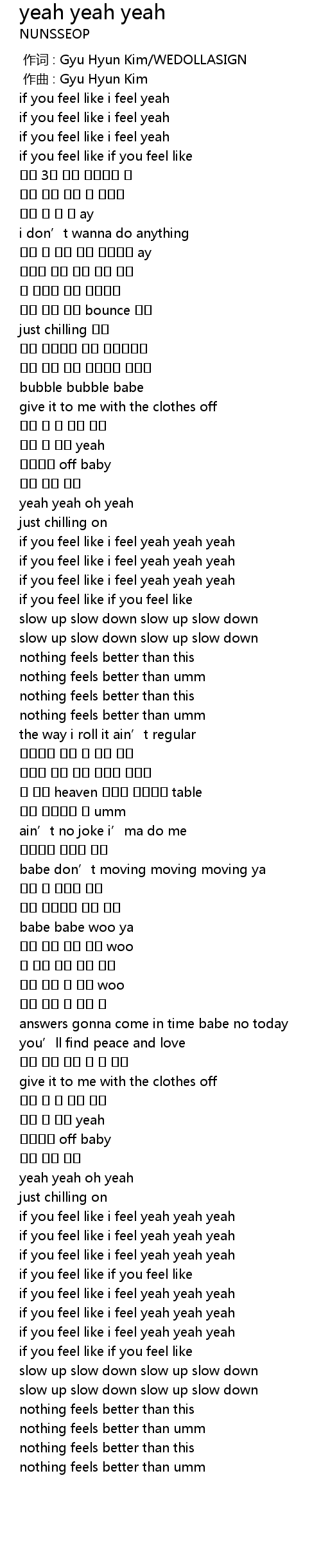 | [01:18.151] | if you feel like i feel yeah yeah yeah |
