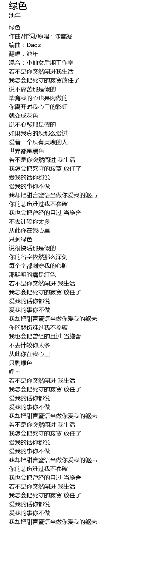 | [02:26.74] | zhǐ shèng lǜ sè |