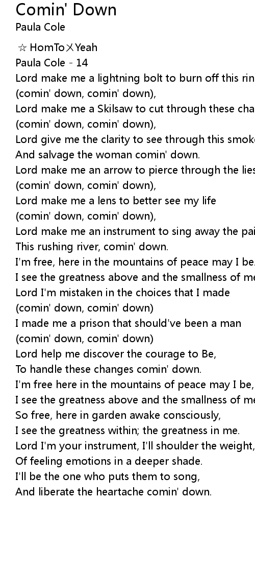 | [00:12.91] | Lord make me a lightning bolt to burn off this ring |