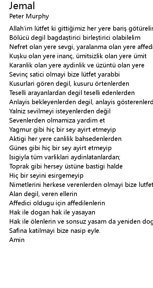 | Allah'im lütfet ki gittiğimiz her yere bariş götürelim | |