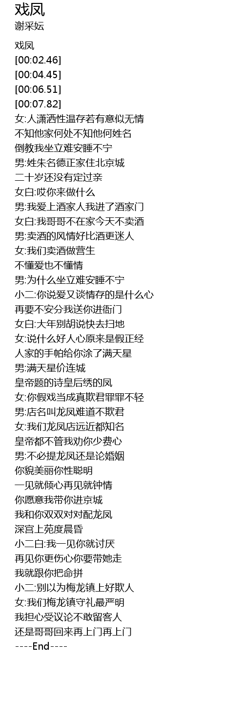 | [00:01.48] | 戏凤 |