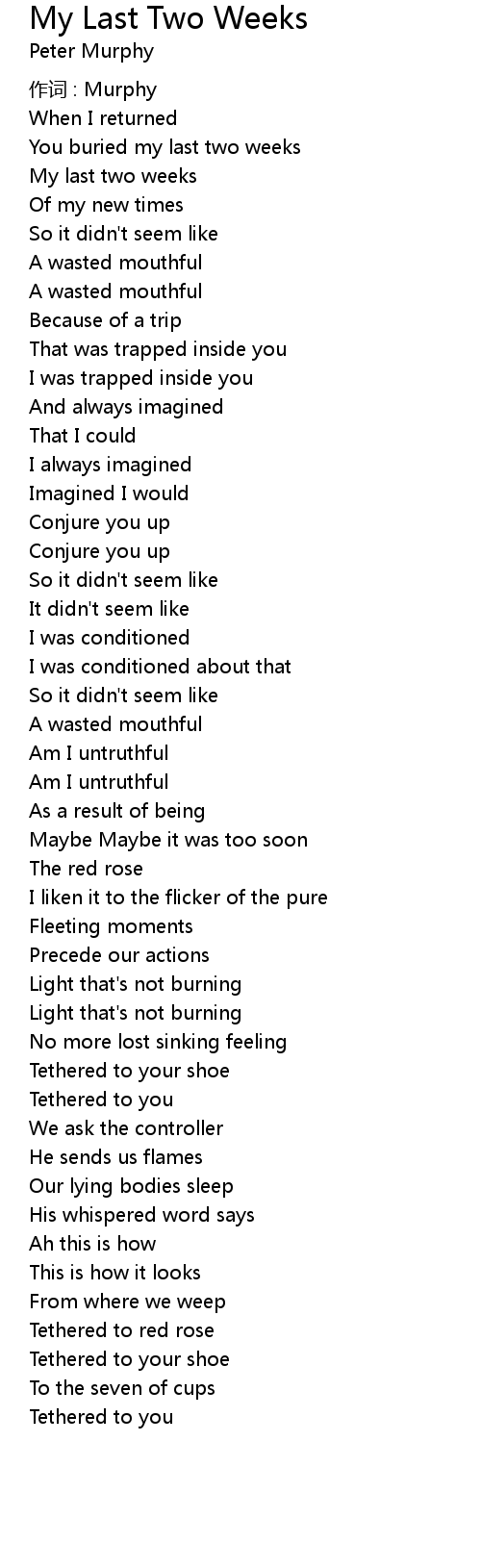 | 歌曲 | My Last Two Weeks |