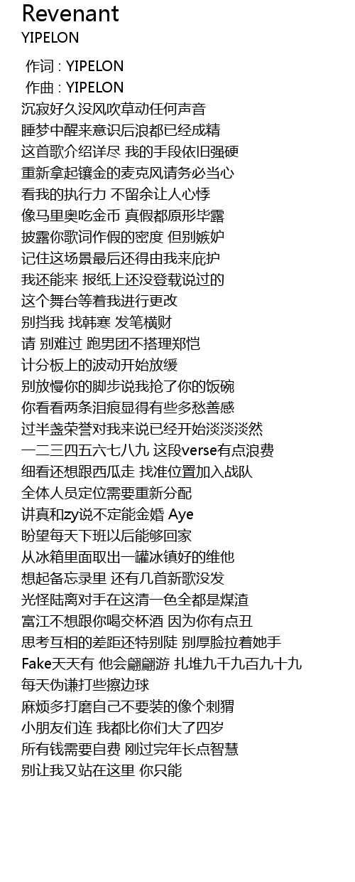| [00:00.000] | 作词 : YIPELON |
