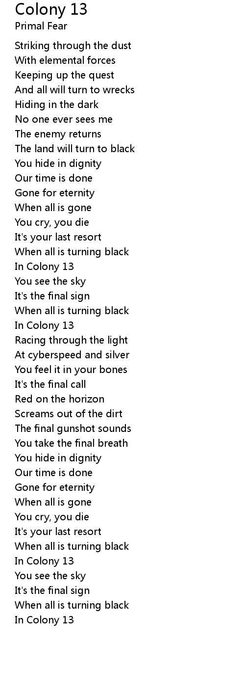 Colony 13 歌词