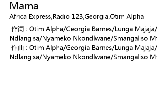 | [00:00.000] | 作词 : Otim Alpha/Georgia Barnes/Lunga Majaja/Sbusiso Ndlangisa/Nyameko Nkondlwane/Smangaliso Mfula |