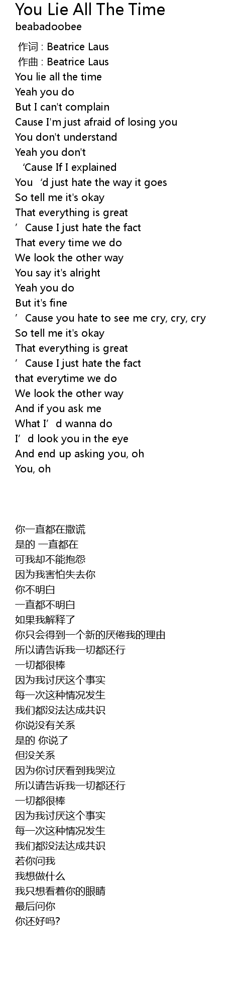 | 歌曲 | You Lie All The Time |
