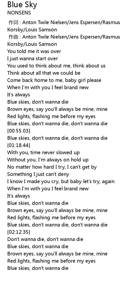 | [00:48.10] | Blue skies, don't wanna die, don't wanna die |