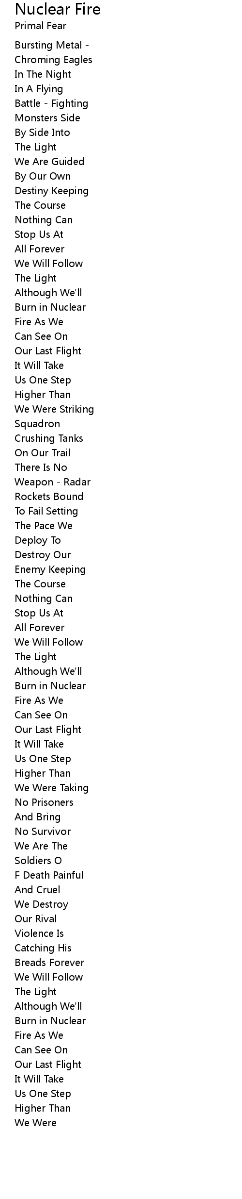 | 歌曲 | Nuclear Fire |