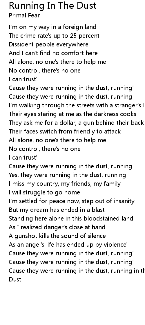 Cause they were running in the dust, running' |