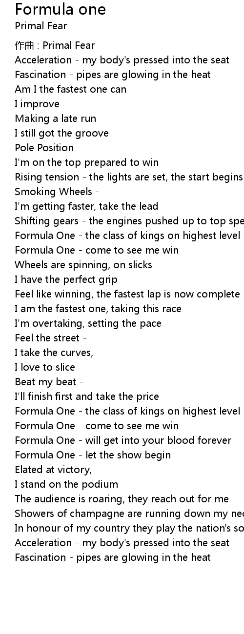 | 歌曲 | Formula one |