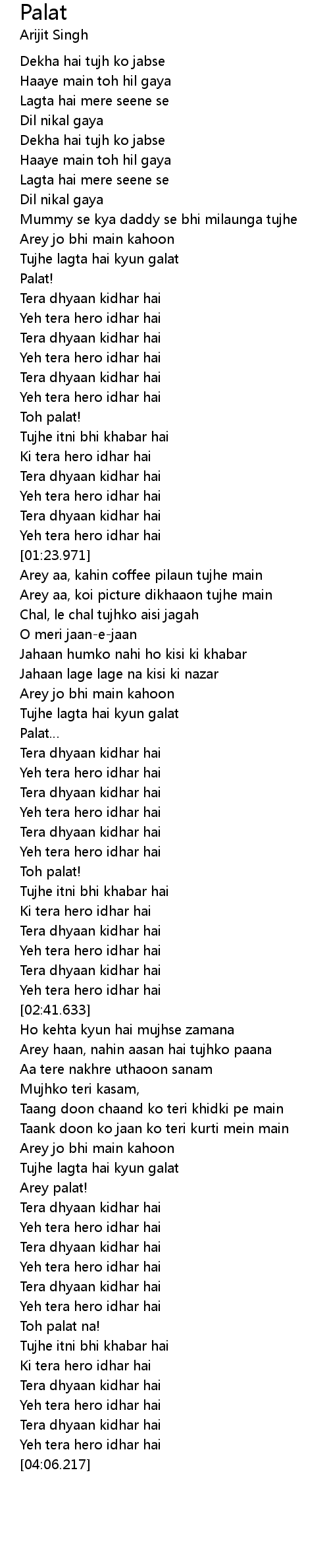 | [01:14.671] | Tera dhyaan kidhar hai |