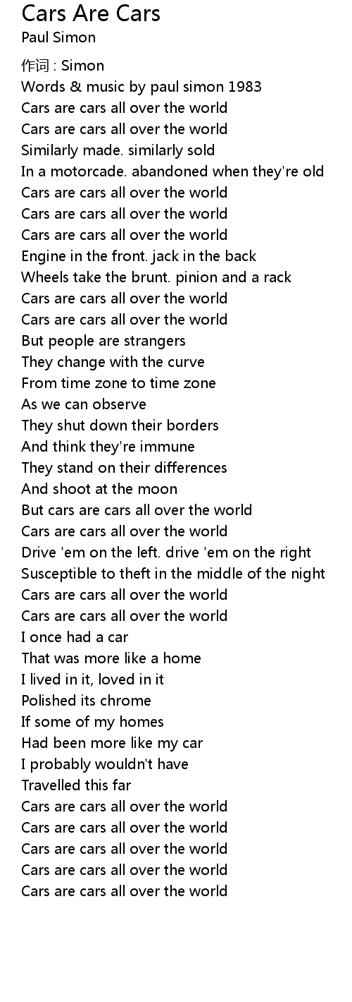 | 歌曲 | Cars Are Cars |