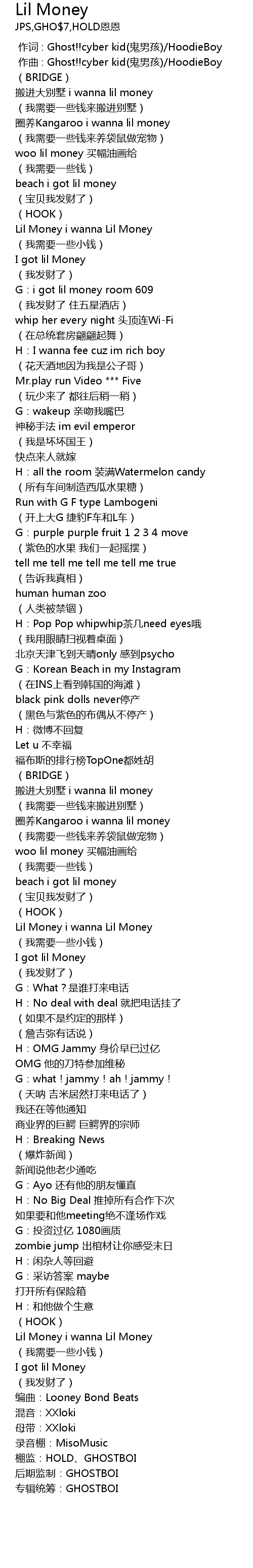 | [00:20.55] | Lil Money i wanna Lil Money |