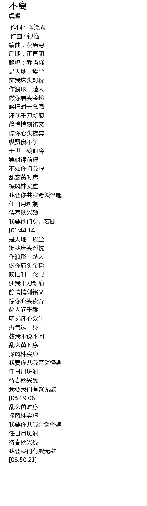 | [03:43.94] | wǒ yào wǒ men yǒu jù wú sàn |
