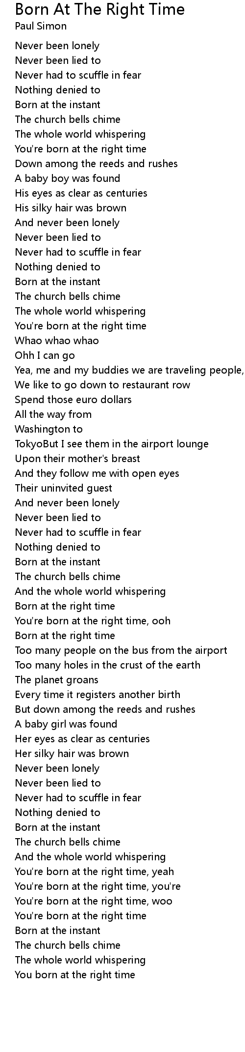You're born at the right time, woo |