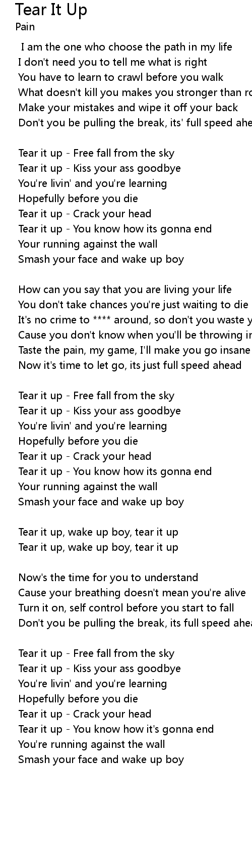 Tear it up, wake up boy, tear it up |