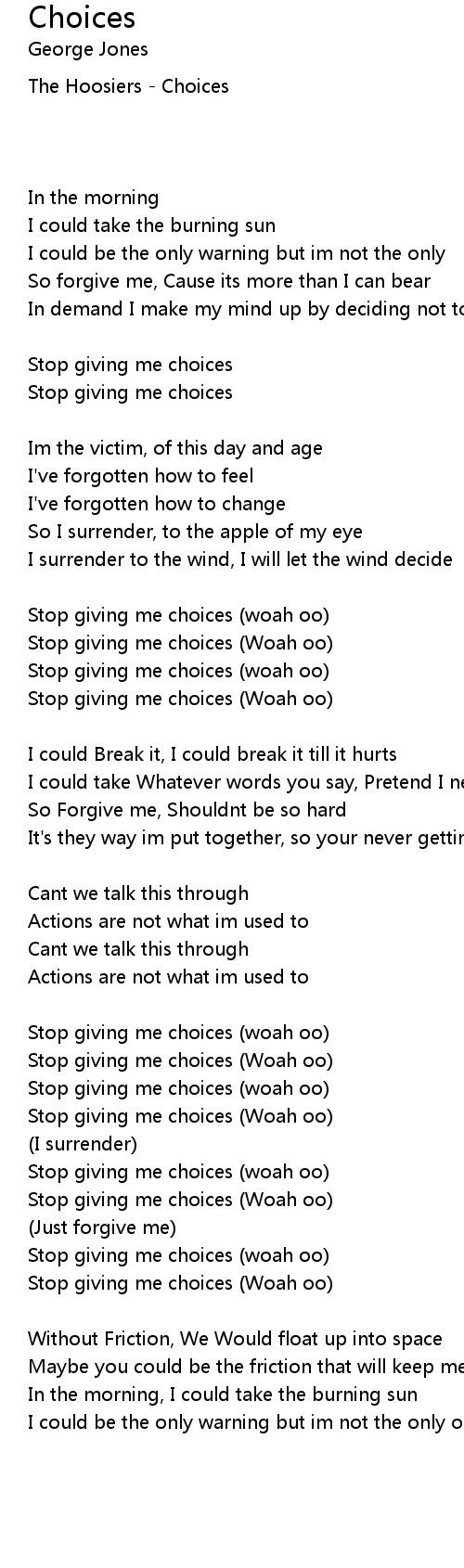 Stop giving me choices (woah oo) |