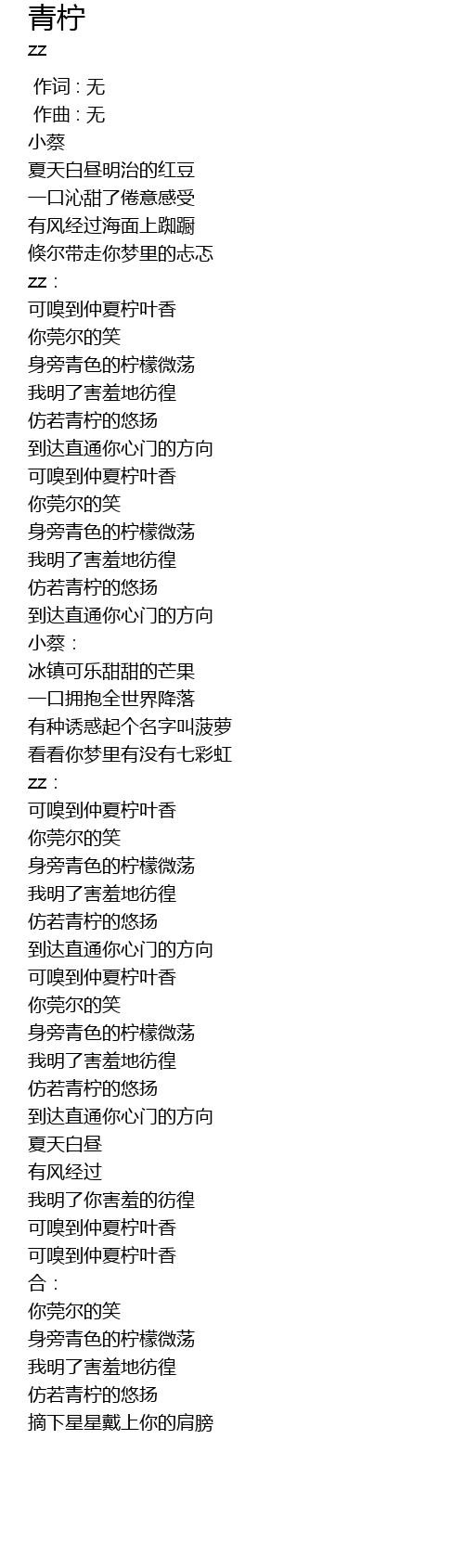 | [00:44.704] | 可嗅到仲夏柠叶香 |