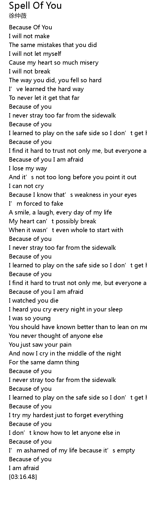 | [00:48.67] | Because of you |