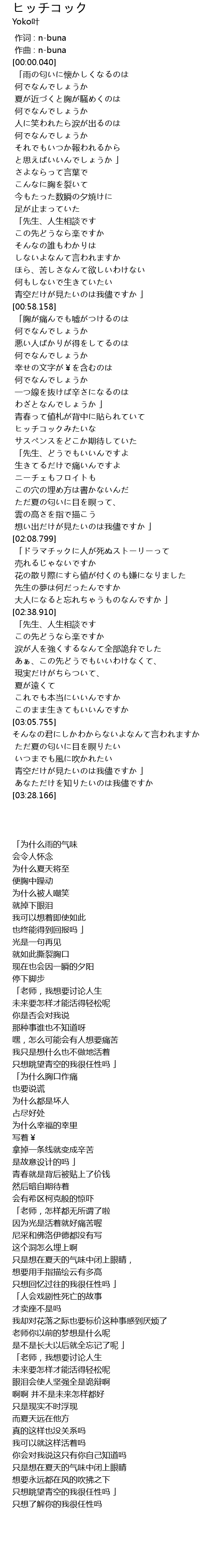 | [00:53.084] | 青空だけが見たいのは我儘ですか 」 |