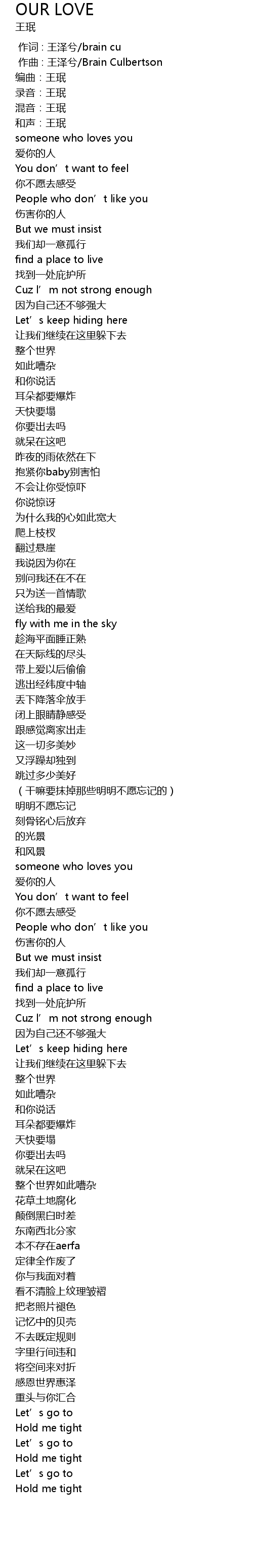 | [00:00.000] | 作词 : 王泽兮/brain cu |