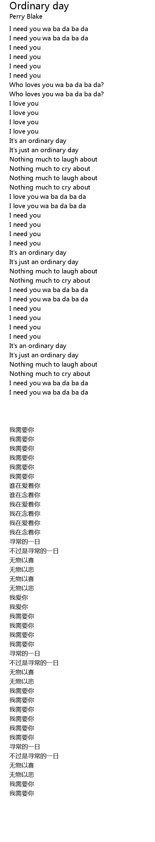 歌曲 Ordinary day