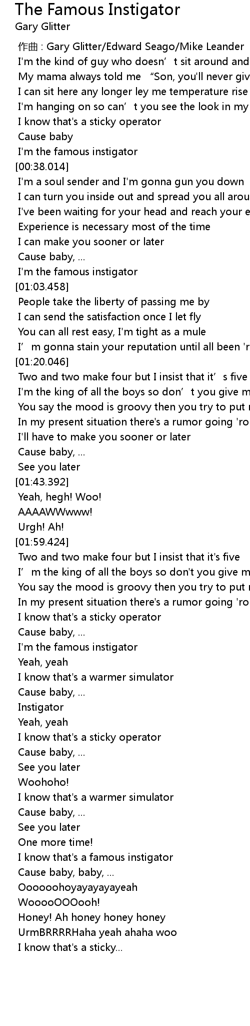 | [00:00.000] | zuo qu : Gary Glitter Edward Seago Mike Leander |