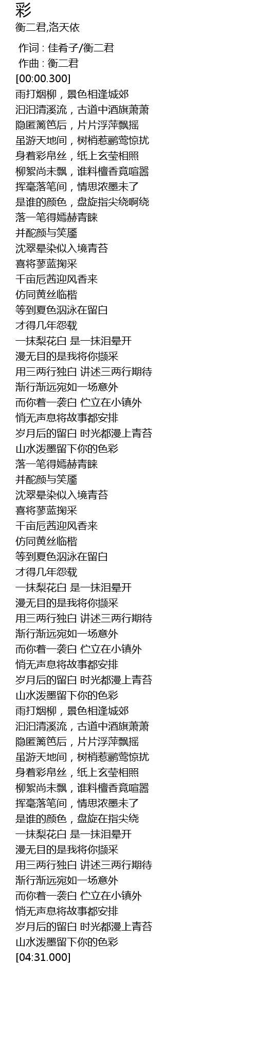 | [04:25.642] | 山水泼墨留下你的色彩 |