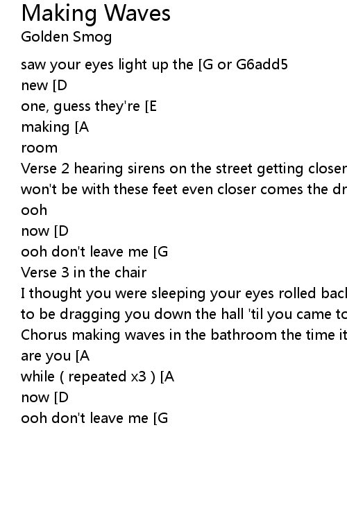 Chorus making waves in the bathroom the time it saves, it's the last room [D]ooh don't leave me [G]now [D]ooh don't leave me [E]now [D]ooh don't leave me [G]now [D]ooh don't leave me [G]now