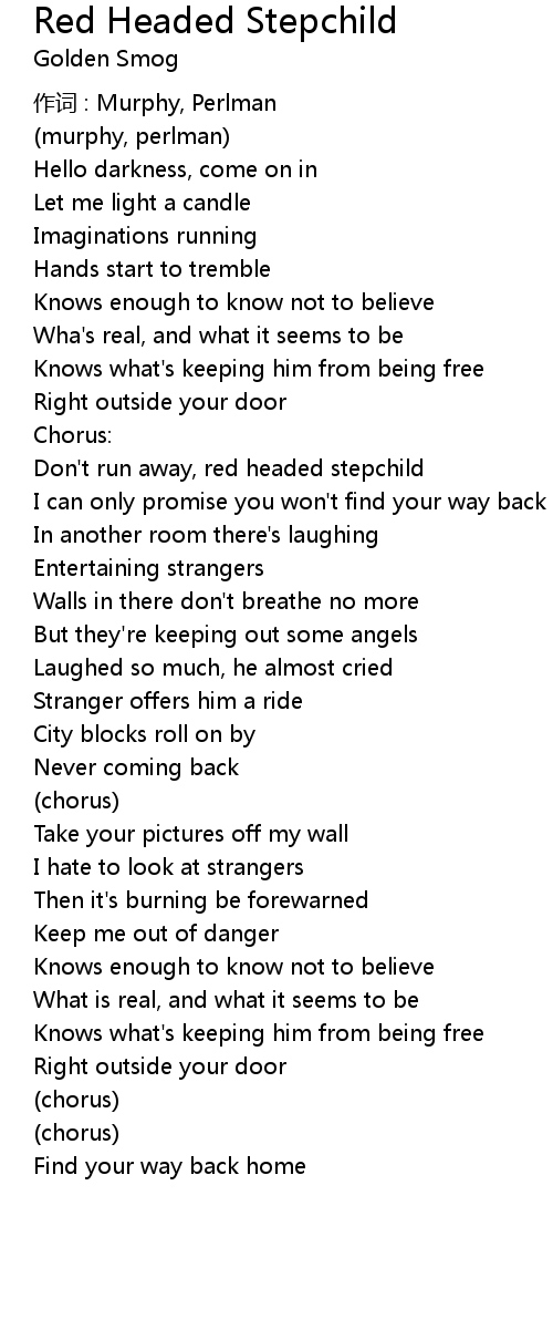 | Don' t run away, red headed stepchild | |