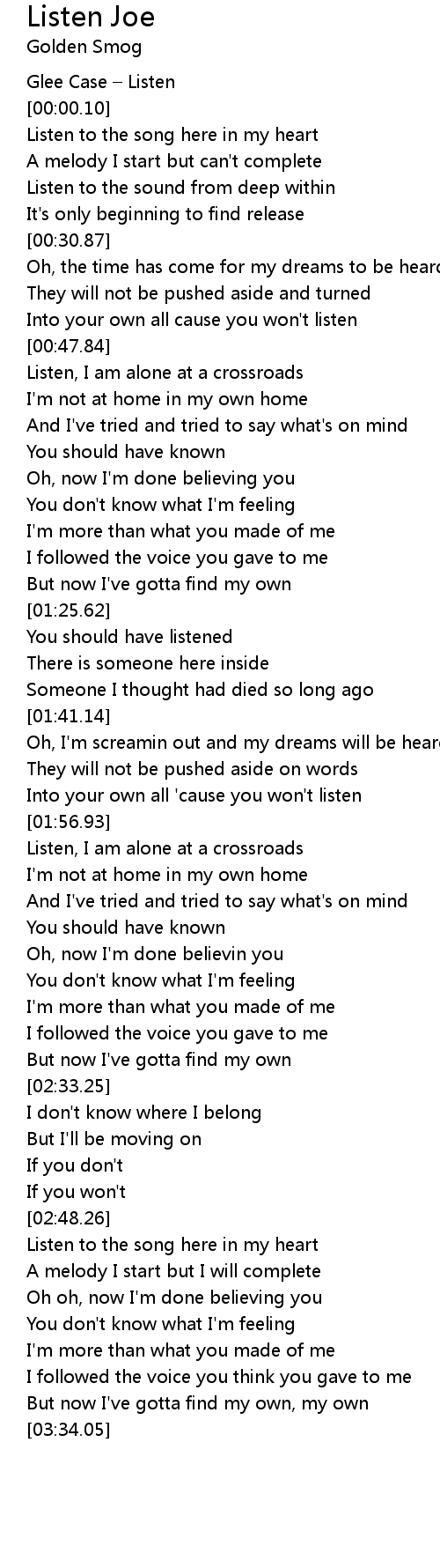 | [01:50.32] | Into your own all 'cause you won't listen |