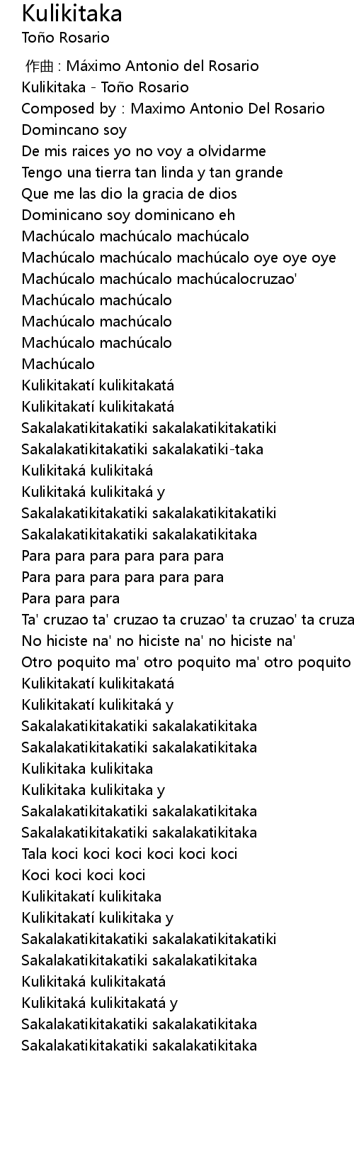 | [02:38.87] | Kulikitakatí kulikitaka |