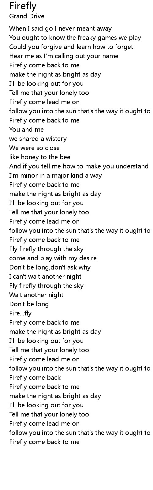 Firefly come back to me |