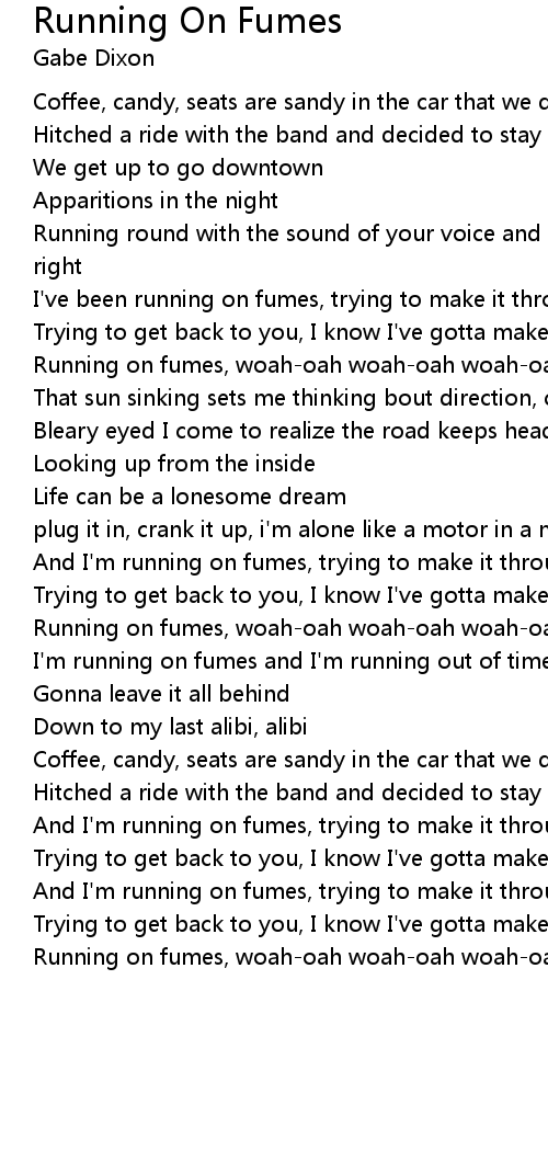 Running on fumes, woah-oah woah-oah woah-oah wo-oah |