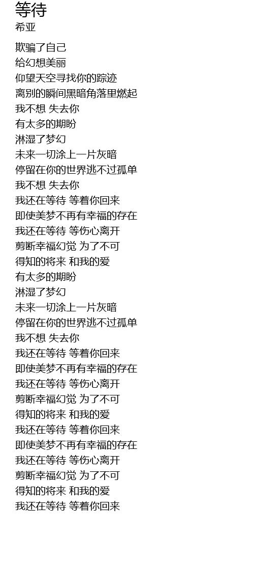 | [01:46.17] | 我还在等待 等伤心离开 |
