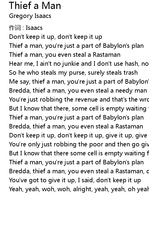 | Thief a man, you' re just a part of Babylon' s plan | |
