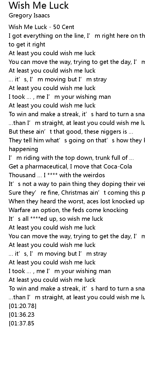 | [00:00.80] | Wish Me Luck 50 Cent |