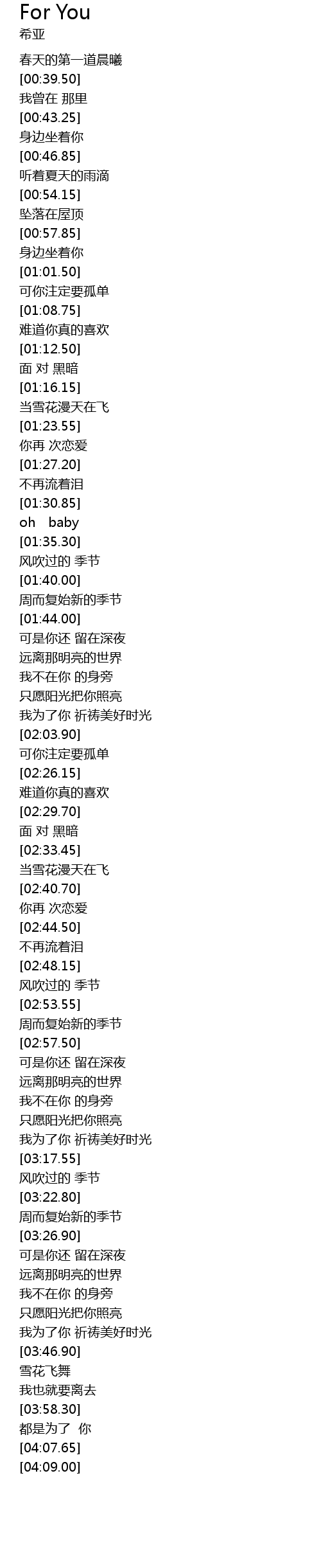 | [03:42.10] | 我为了你 祈祷美好时光 |