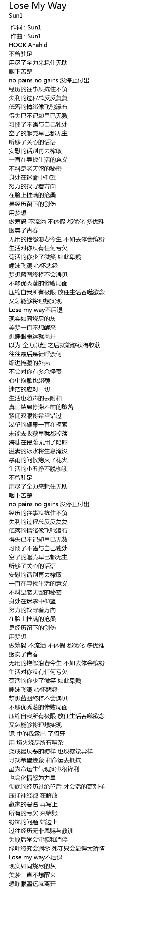 | 歌曲 | Lose My Way |