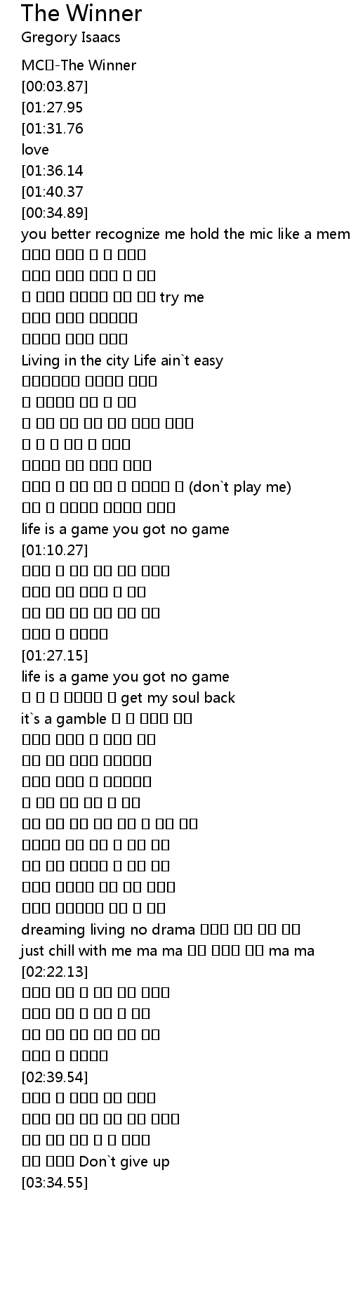 | [03:29.41][01:40.37][00:30.77] | Don t give it up |