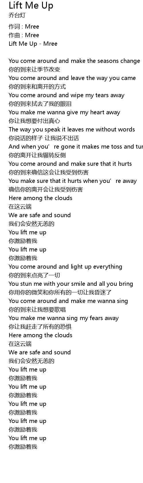 | Lift Me Up Mree | |