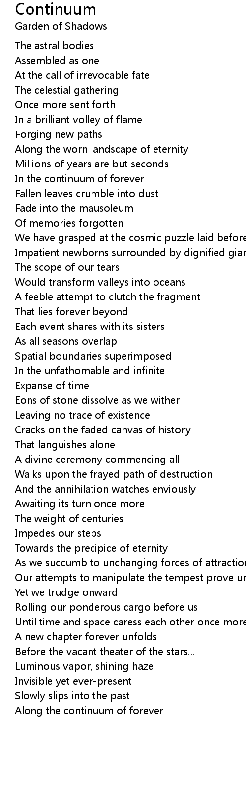 In the continuum of forever |
