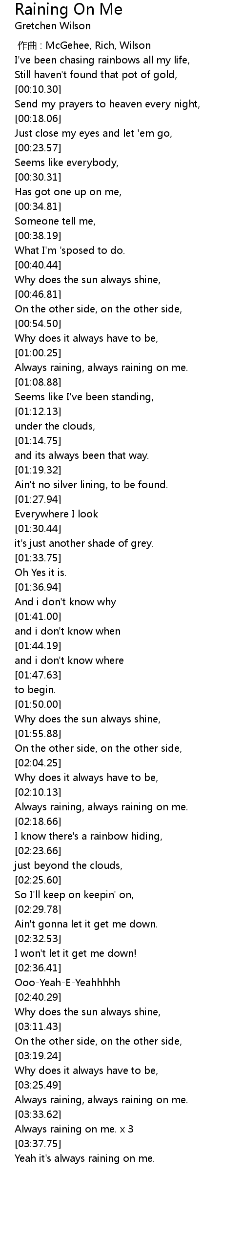 | [01:24.19] | Ain' t no silver lining, to be found. |