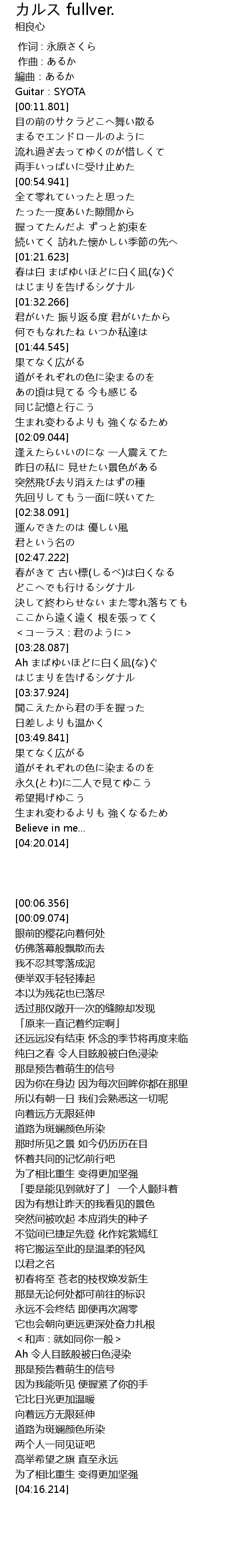 | [03:16.485] | 決して終わらせない また零れ落ちても |