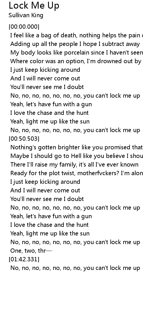 | [01:37.309] | No, no, no, no, no, no, no, you can't lock me up |