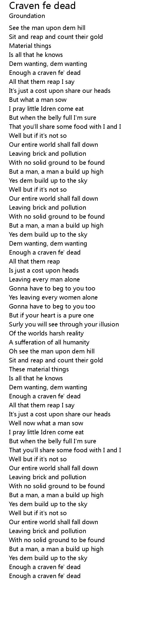 Enough a craven fe' dead |